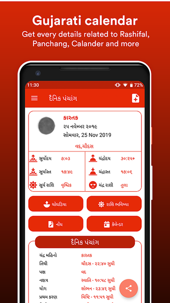 Приложение календаря Гуджарати является незаменимым помощником для тех, кто хочет следить за календарем Гуджарати. Это не только приложение-календарь, но и приложение для управления временем. Вы сможете планировать свой день и даже год на основе предоставленной информации. В приложении есть несколько разных разделов, и каждый из них имеет свою цель. Ежедневный раздел поможет вам следить за ежедневными событиями, происходящими в мире. Вы также сможете узнать, какие текущие события происходят в мире. Ежемесячный раздел поможет вам отслеживать ежемесячные события, которые происходят.